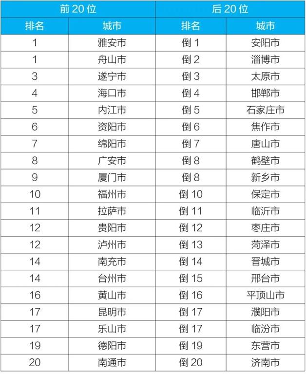 2020年10月168個重點城市排名前20位和后20位城市名單